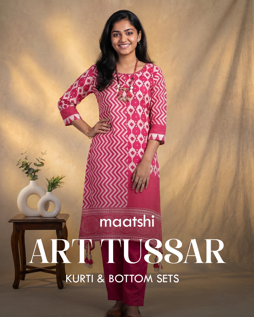 Curated kurti and bottom sets by Maatshi featuring clean silhouettes, fine fabrics, and effortless everyday styling.