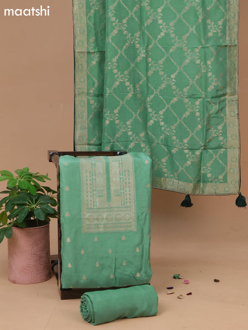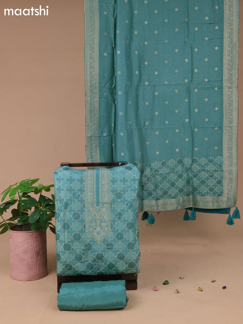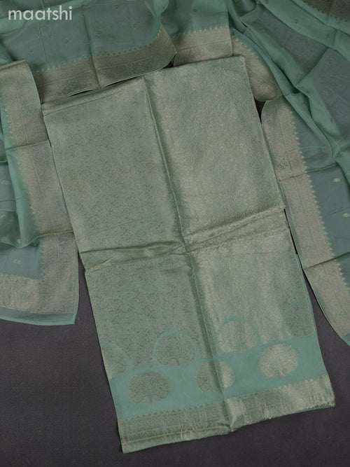 Chanderi readymade kurti set pastel blue with embroidery work neck pattern & sleeve attached and patiala pant & chiffon dupatta -