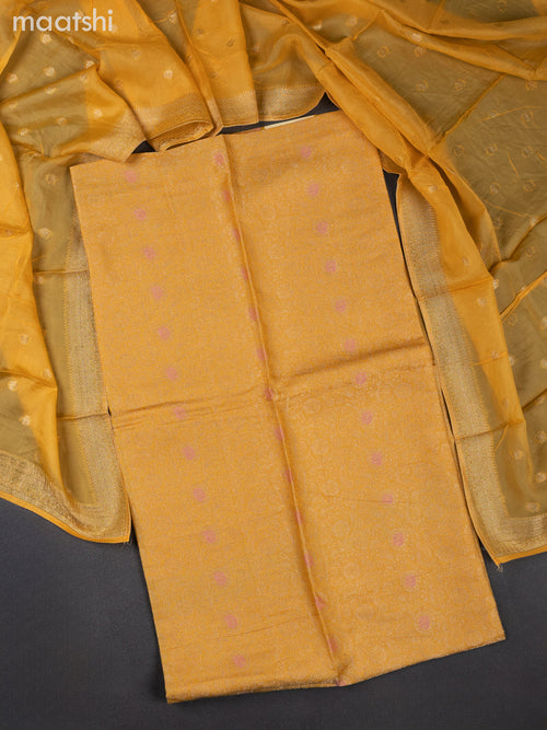 Slub cotton readymade kurti set mustard yellow with al...