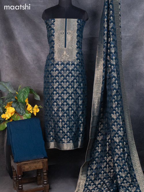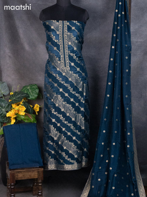 Slub cotton readymade kurti navy blue with allover butta prints & gottapatti lace work neck pattern and straight cut pant Slub cotton readymade kurti navy blue with allover butta prints & gottapatti lace work neck pattern and straight cut pant