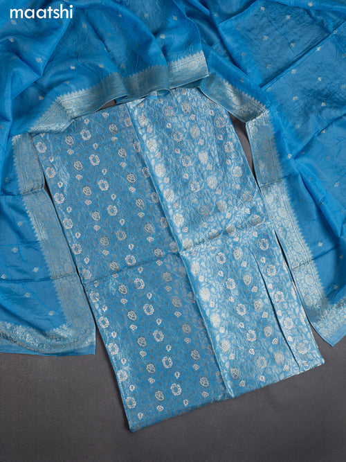 Cotton short kurti light blue and off white with allover prints & simple neck pattern without pant Cotton short kurti light blue and off white with allover prints & simple neck pattern without pant
