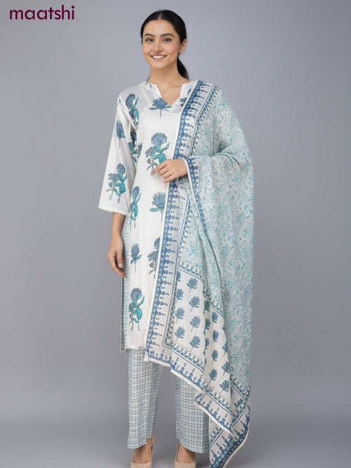Modal readymade umbrella kurti pastel blue with allover prints & beaded work neck pattern without pant Modal readymade umbrella kurti pastel blue with allover prints & beaded work neck pattern without pant