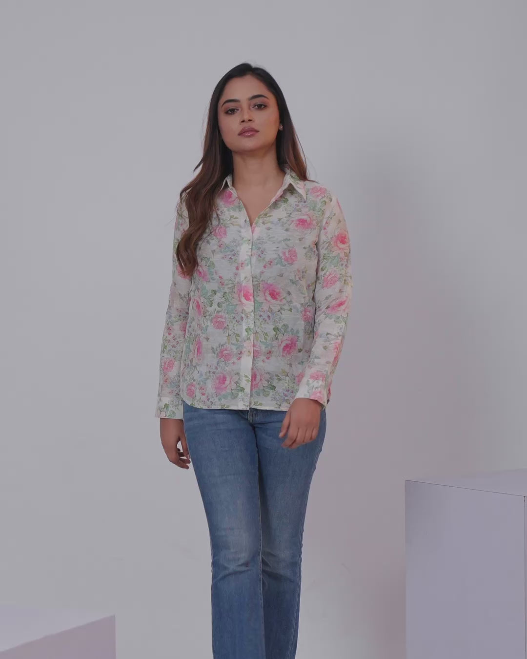 Women's shirt multi colour with allover floral prints and collar neck pattern